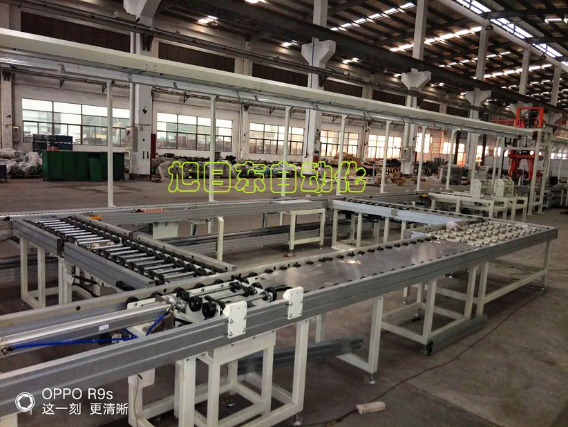 2、無動力滾輪線上的頂升移載機與接駁滾輪線同時動作,將工裝輸送至無動力滾輪線上;